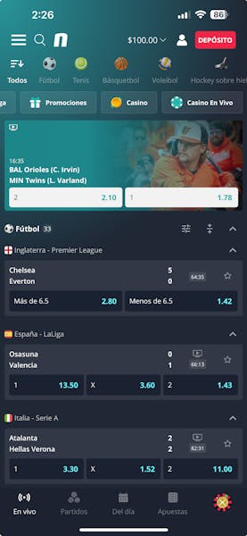 Además, cuenta con una selección de seis deportes virtuales, que incluyen tenis, carreras de caballos y ligas de futbol simuladas.
