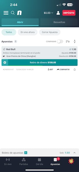 Una vez que hice la apuesta la pude consultar desde el apartado ‘Apuestas’ ubicado en la parte inferior de la pantalla.